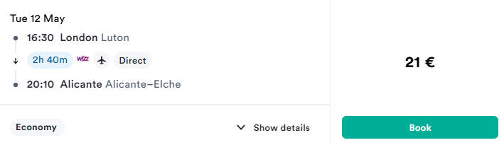 • 12 May – 21 EUR (one way)